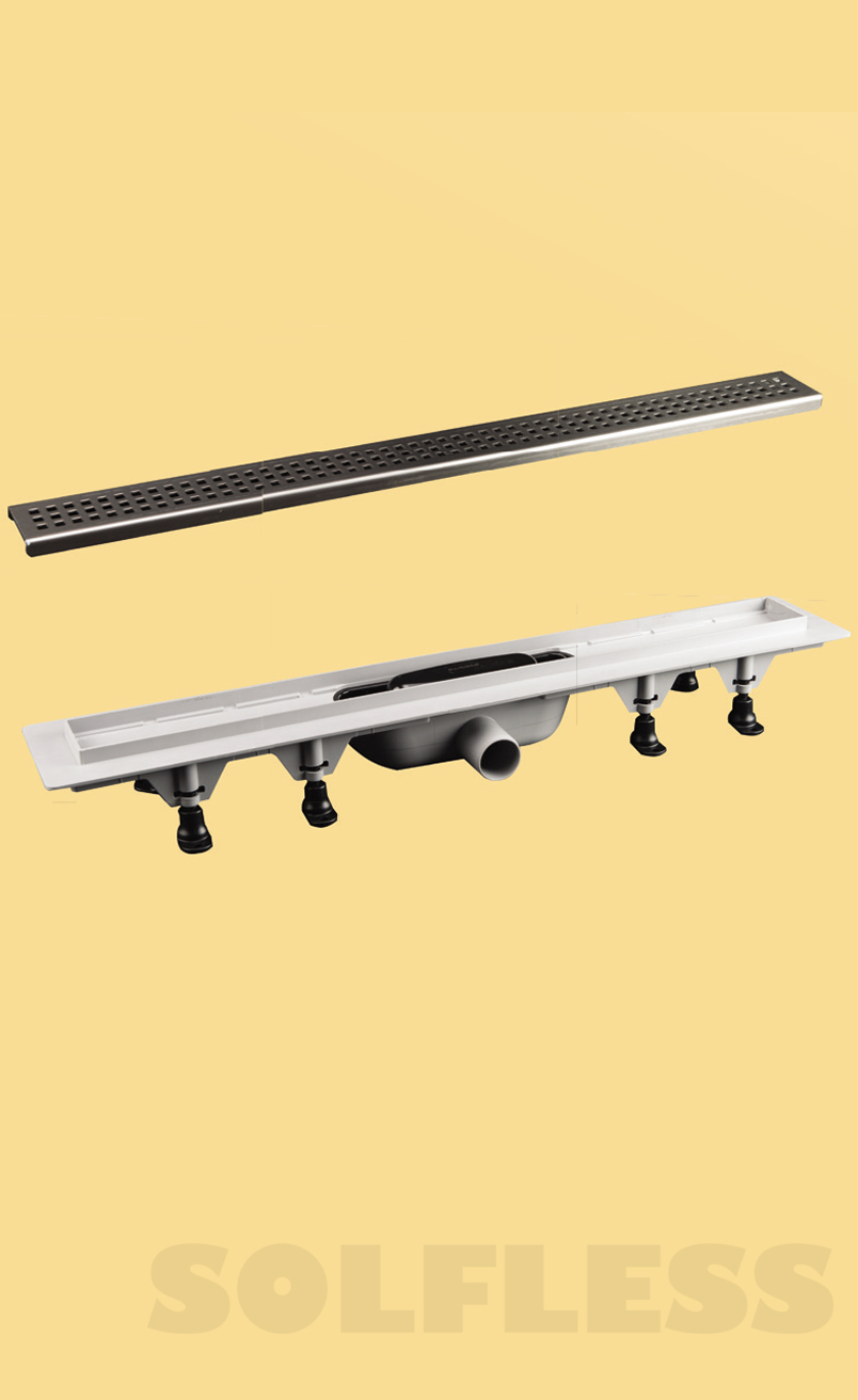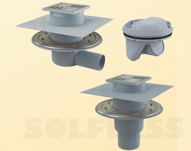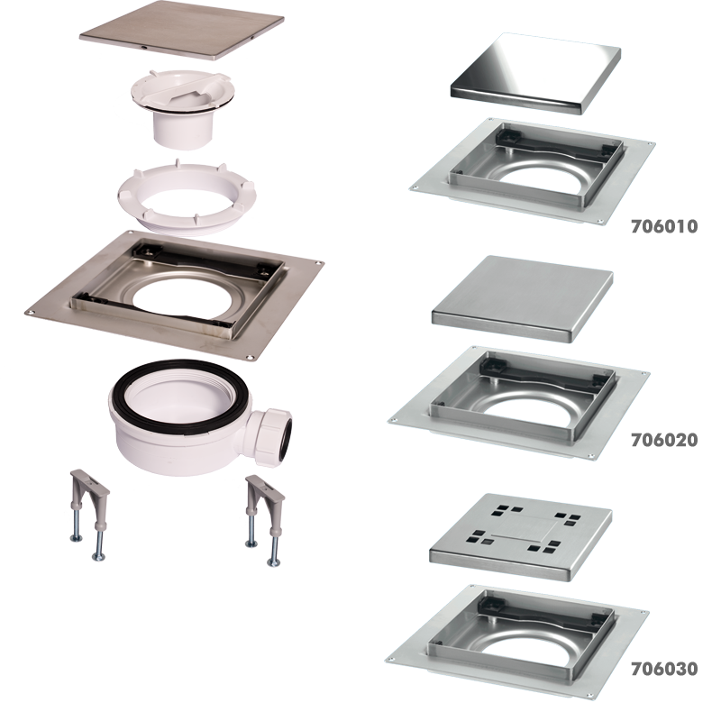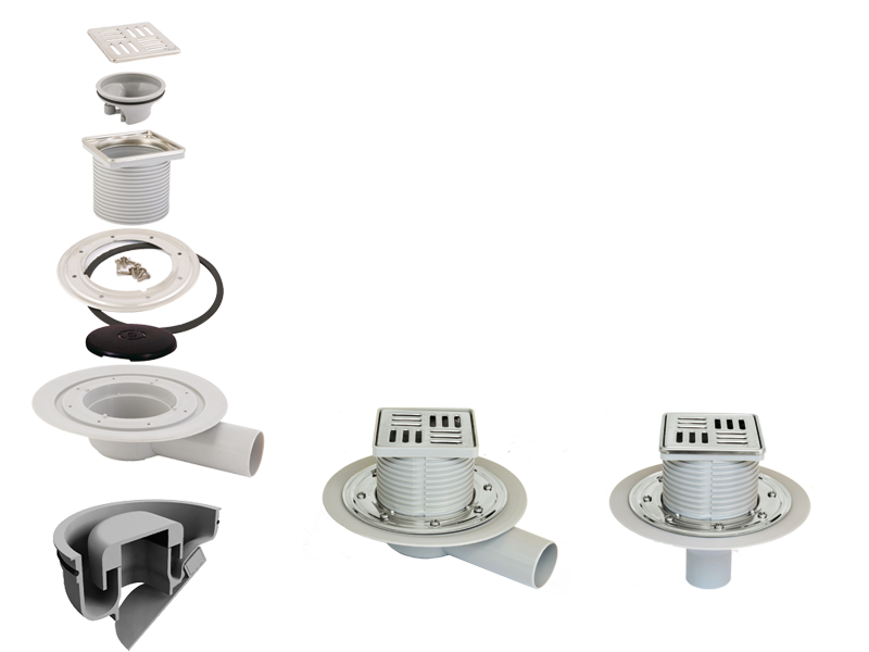 MOD. OLTDrenagem do chuveiro altura 62 milímetros . Capacidade de drenagem 50.5l/min . Saída horizontal . Tampa de aço inoxidável . Com folha de impermeabilização de PVC