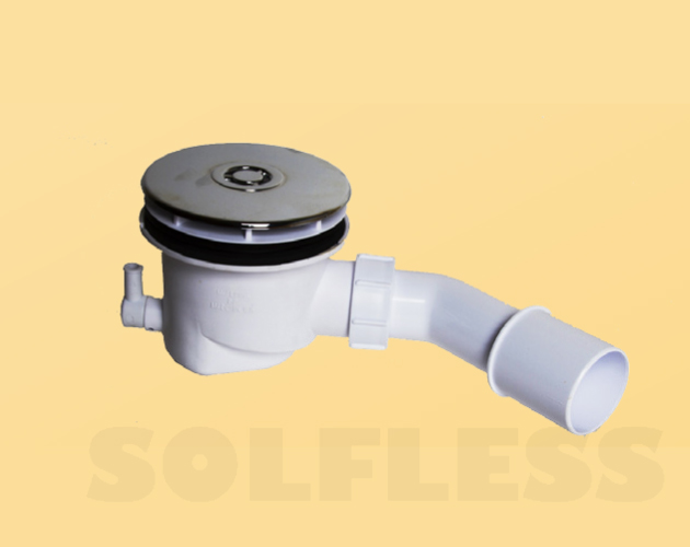 MOD. DAYTONAVálvula ducha, altura 52 mm Capacidad desagüe 35 l / m. Salida Horizontal con vaso sifónico, Sujeción con 3 tornillos Inox. con Aro Poliamida.