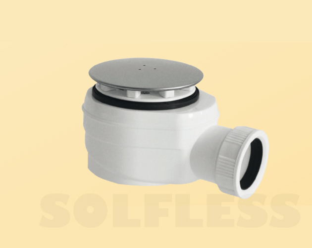 MOD. NEW PORT Válvula ducha, altura 53 mm. Capacidad desagüe 35 l / m. Salida horizontal con vaso sifónico.Tapa Lisa ABS. Sujeción con 3 tornillos Acero Inox.