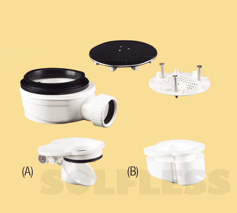 MOD. ALBANYVálvula ducha, altura 52 mm Capacidad desagüe 35 l / m. Salida horizontal con válvula Anti-retorno ( Sifón Seco ) Sujeción con 3 tornillos Inox. con Aro Poliamida.